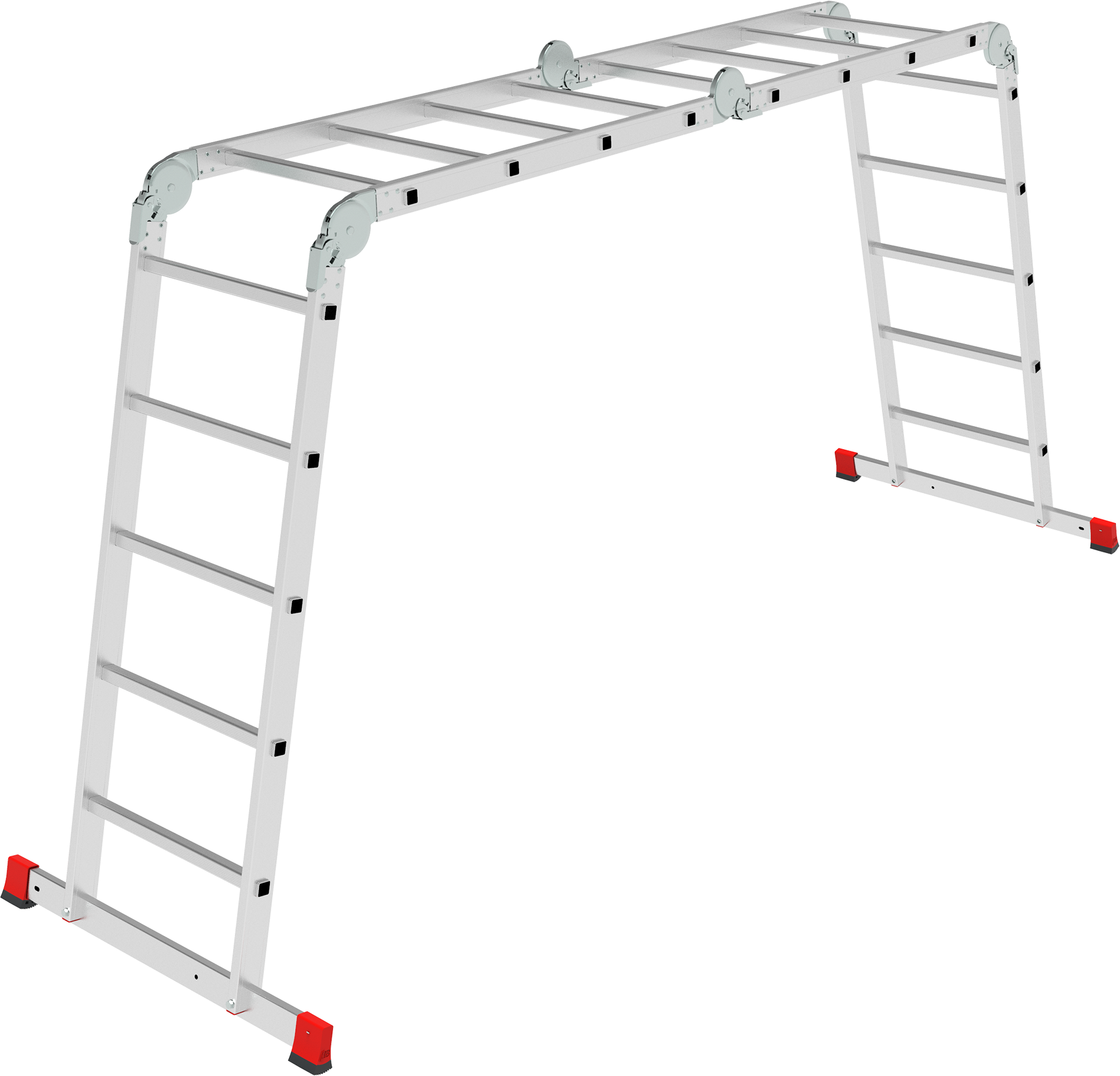 Высокопрочная лестница «4 в 1»: приставная, Г-образная с опорой на стену, двухсторонняя стремянка, помост. Увеличенная ширина для свободы перемещений.