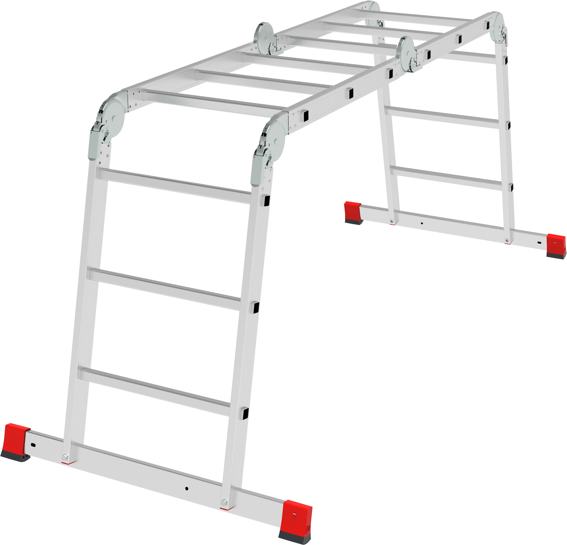 Высокопрочная лестница «4 в 1»: приставная, Г-образная с опорой на стену, двухсторонняя стремянка, помост. Увеличенная ширина для свободы перемещений.