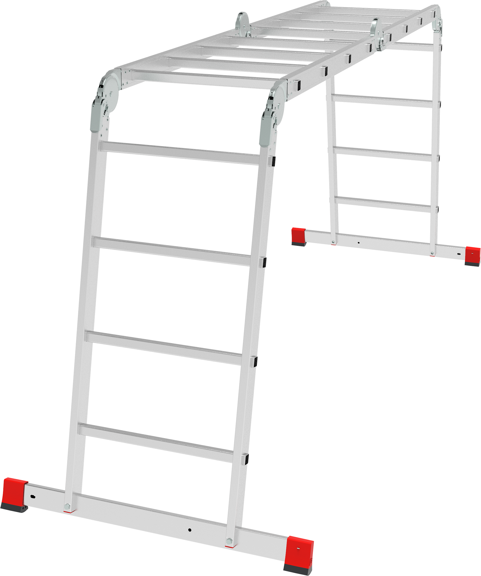 Высокопрочная лестница «4 в 1»: приставная, Г-образная с опорой на стену, двухсторонняя стремянка, помост. Увеличенная ширина для свободы перемещений.
