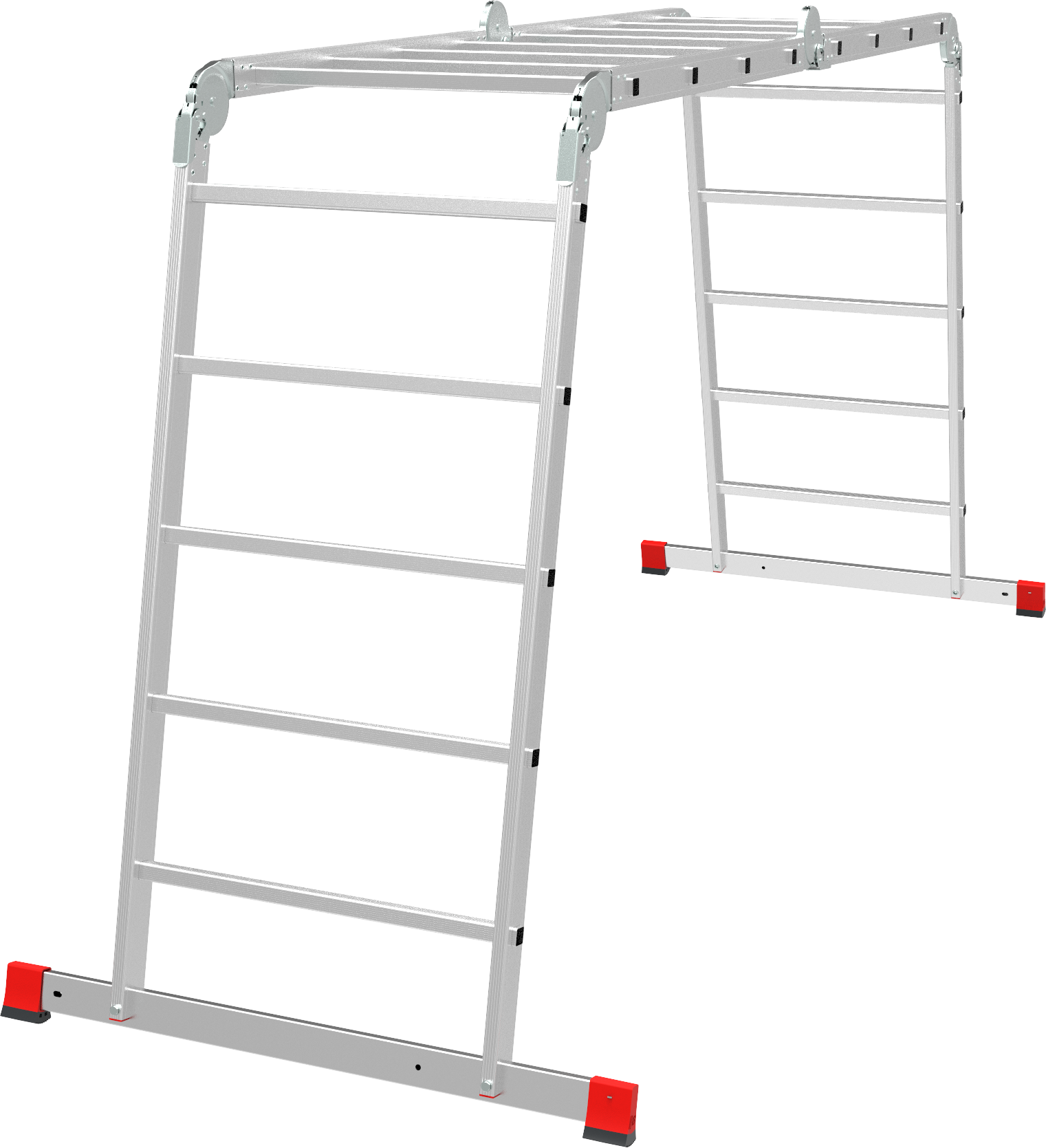 Высокопрочная лестница «4 в 1»: приставная, Г-образная с опорой на стену, двухсторонняя стремянка, помост. Больше пространства для свободы перемещений.
