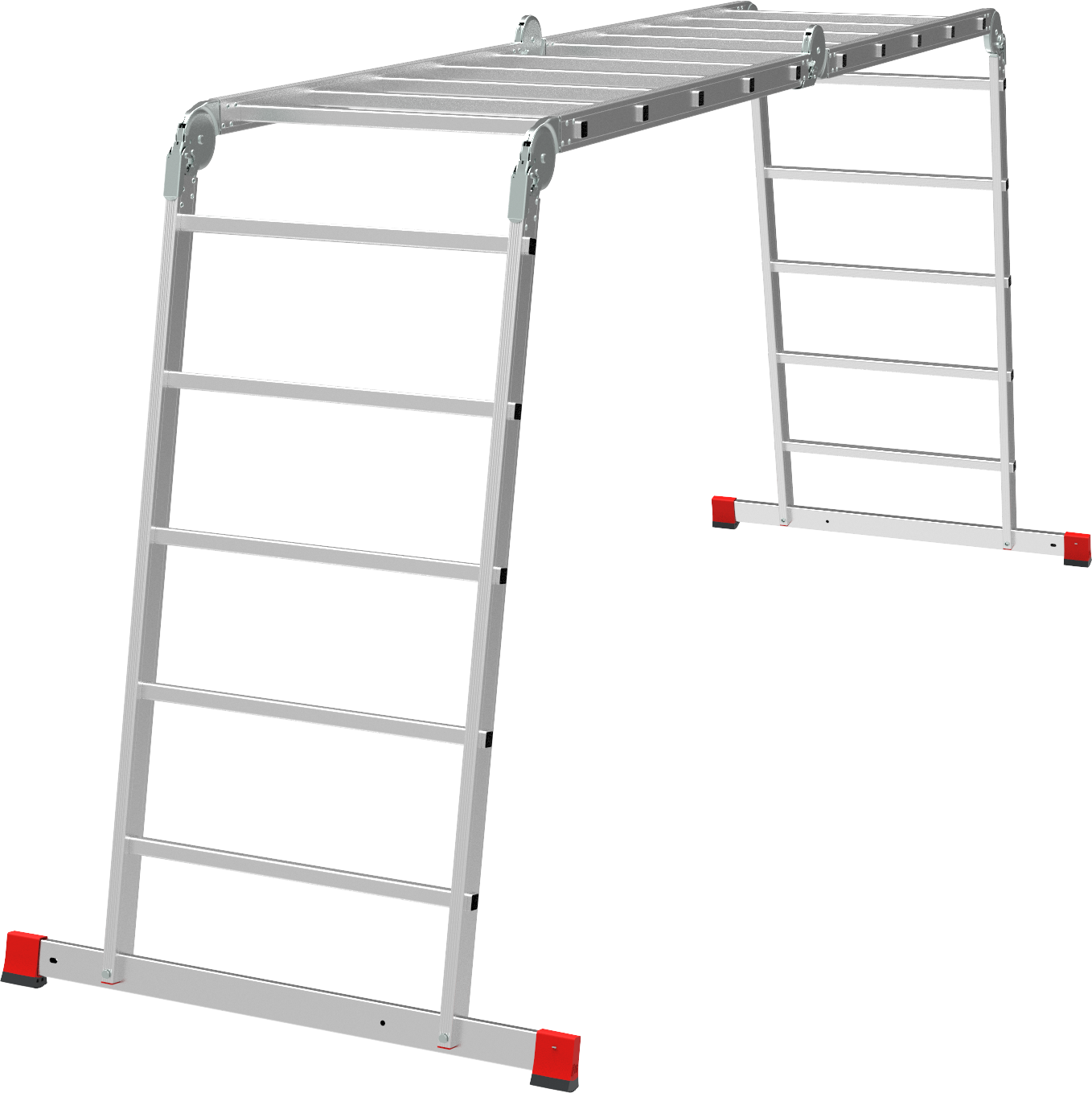 Высокопрочная лестница «4 в 1»: приставная, Г-образная с опорой на стену, двухсторонняя стремянка, помост. Больше пространства для свободы перемещений.
