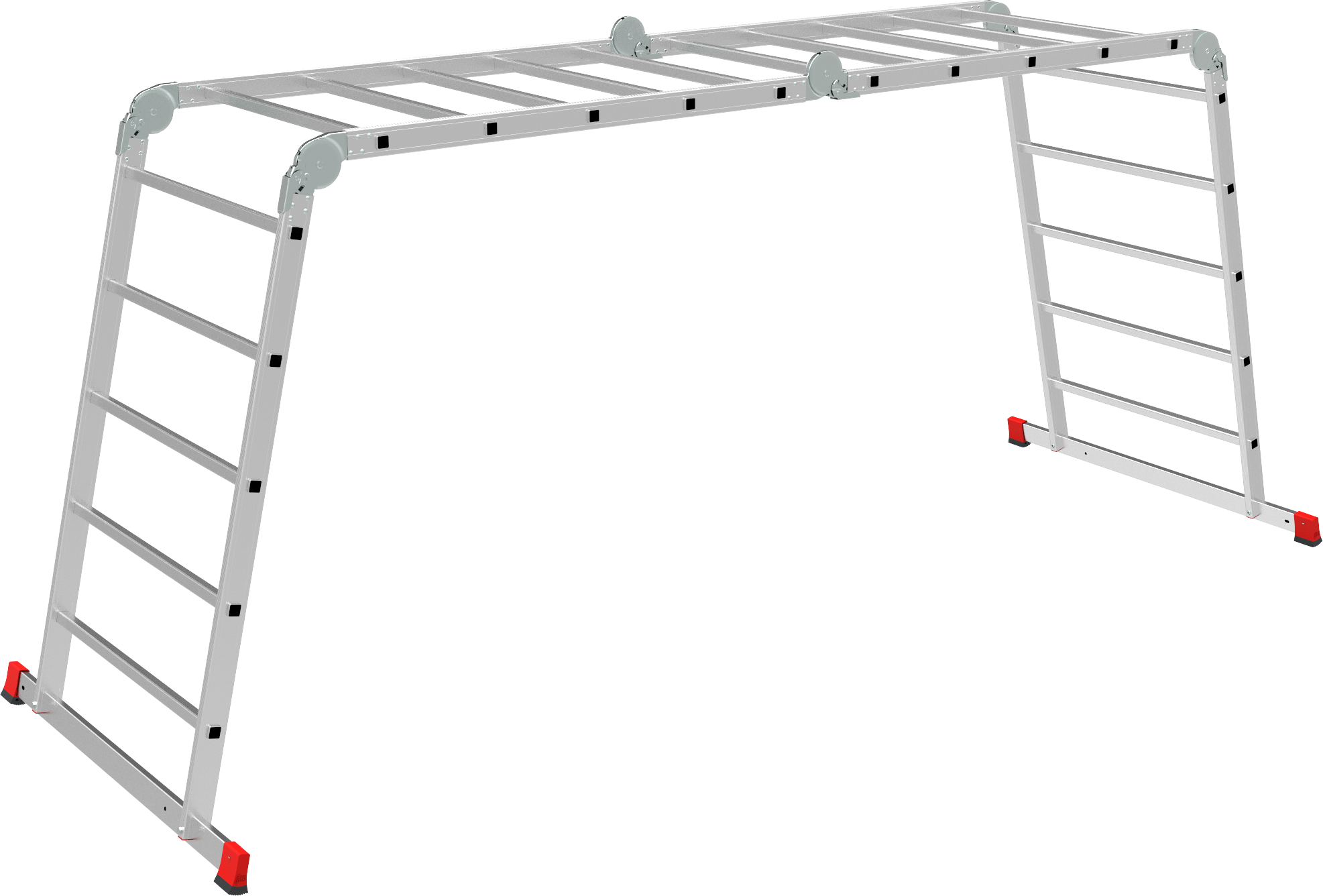 Высокопрочная лестница «4 в 1»: приставная, Г-образная с опорой на стену, двухсторонняя стремянка, помост. Больше пространства для свободы перемещений. Используется как рабочий стол.