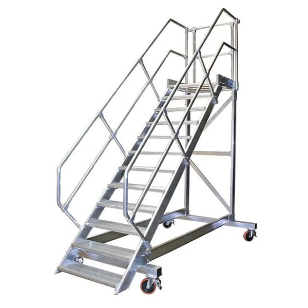 - Данный трап относится к профессиональной серии лестниц от немецкого концерна и имеет полное соответствие с DIN EN ISO 14122. Передвижной трап с площадкой Krause STABILO включает в себя следующие особенности конструкции и функциональные преимущества, включенные в каждую из моделей: легкий алюминиевый сплав стал отличным материалом для данного перехода — не ржавеет, не подвергается механическим повреждениям и имеет высокий порог нагрузки; ступени имеют ширину 600, 800 и 1000 мм, а так же возможность замены их на перфорированные ступени или ступени и решетки; рекомендуемый угол наклона составляет 60 градусов (при нем глубина ступеней 225 мм), а так же существуют модели с углом наклона 45 градусов и глубиной ступеней 175 мм; изделие имеет повышенный уровень безопасности и стандартно комплектуется сразу двумя поручнями и защитным ограждением, высотой 1,1 метр, а так же защитой на уровне колен (особенно с углом наклона в 60 градусов); • на ходовой и опорной части размещены по 2 ролика с диаметром 160 мм, которые оснащены отличной стоп-системой для неподвижности конструкции во время работы на ней; на опорной части расположена прочнейшая траверса, которая так же способствует надежности и устойчивости лестницы — перехода. Передвижной трап с площадкой Krause STABILO можно заказывать под свои индивидуальные потребности. Указывая необходимый угол наклона и длины профилей.