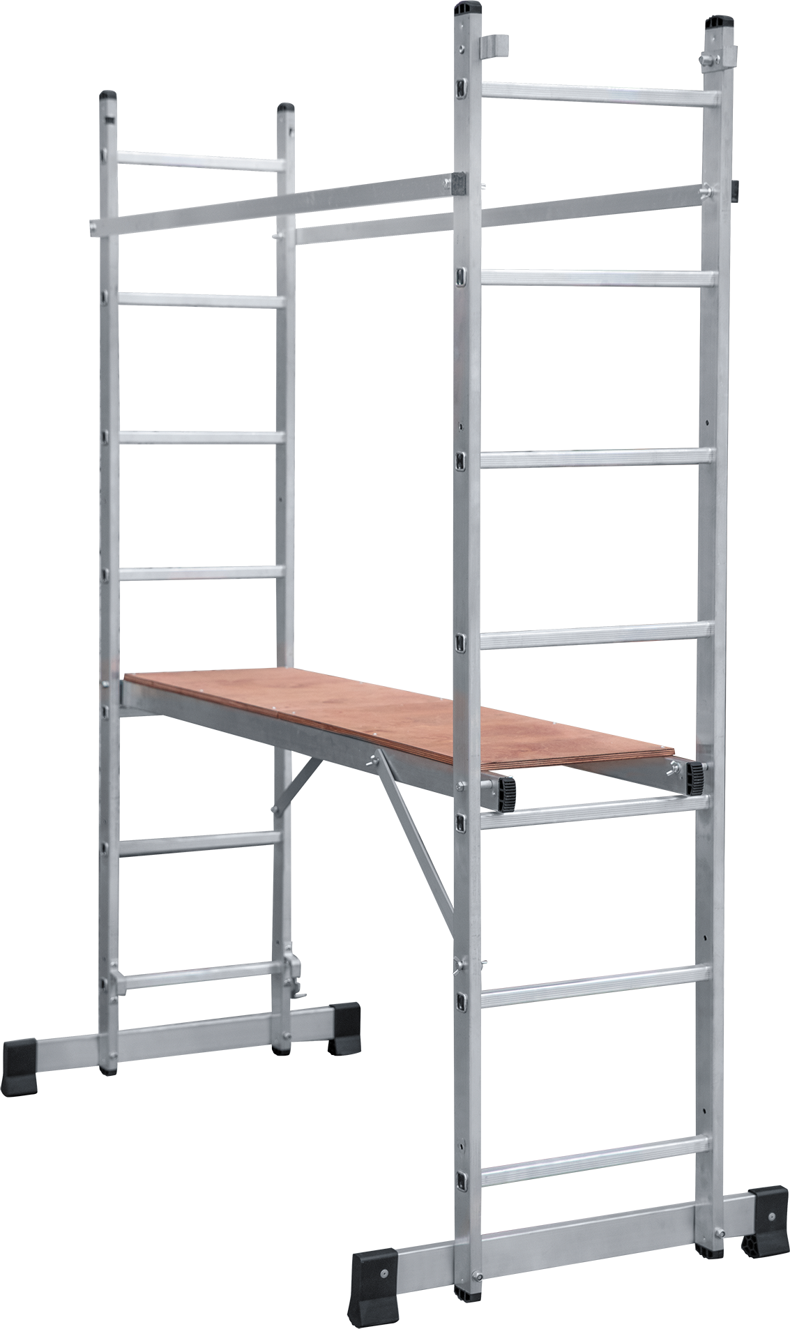 • Легкая и прочная лестница-подмости «3 в 1»: приставная лестница, стремянка, строительные подмости.