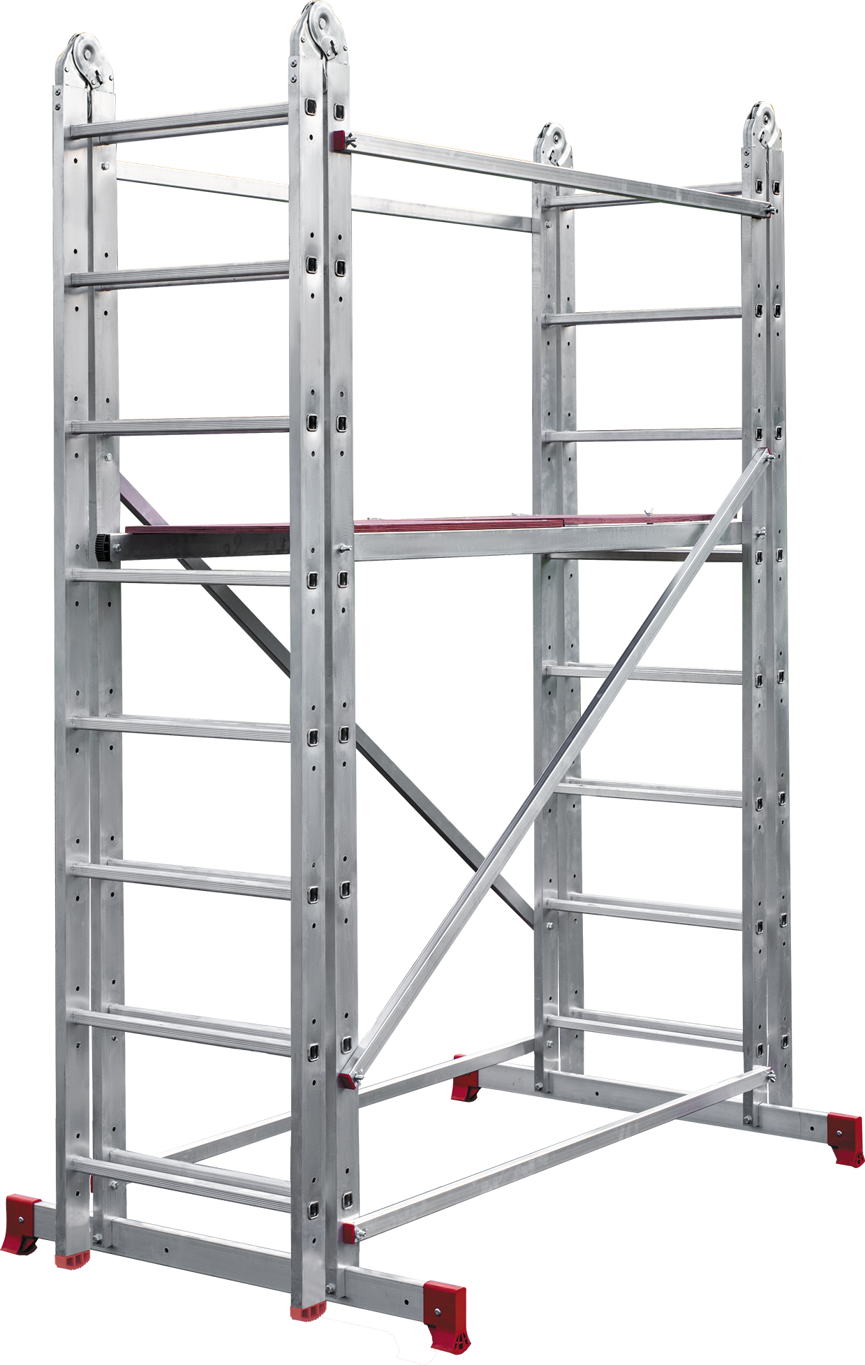 - Многофункциональность: вышка-тура, лестница, рабочие подмости и стремянка в одном изделии