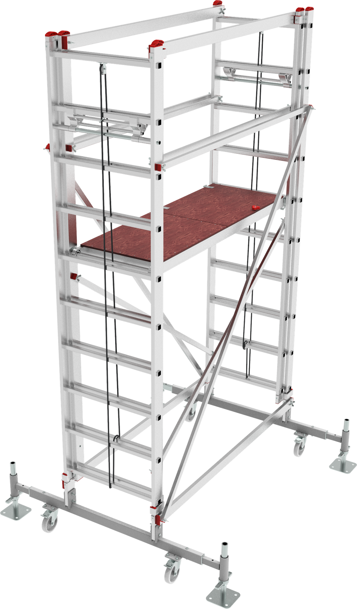 - Высота площадки регулируется тросом с шагом 260 мм, надёжная фиксация кронштейнами.