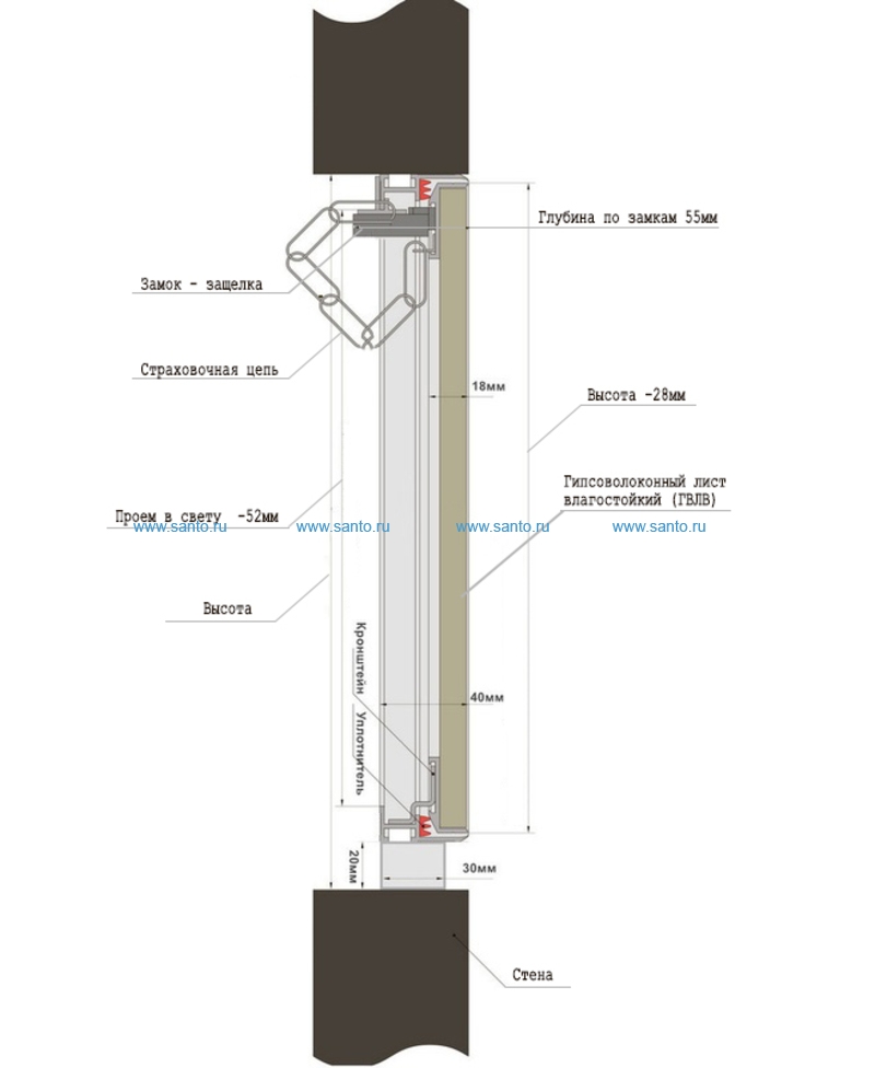 Дверца заполнена влагостойким гипсоволокном (ГВЛВ)