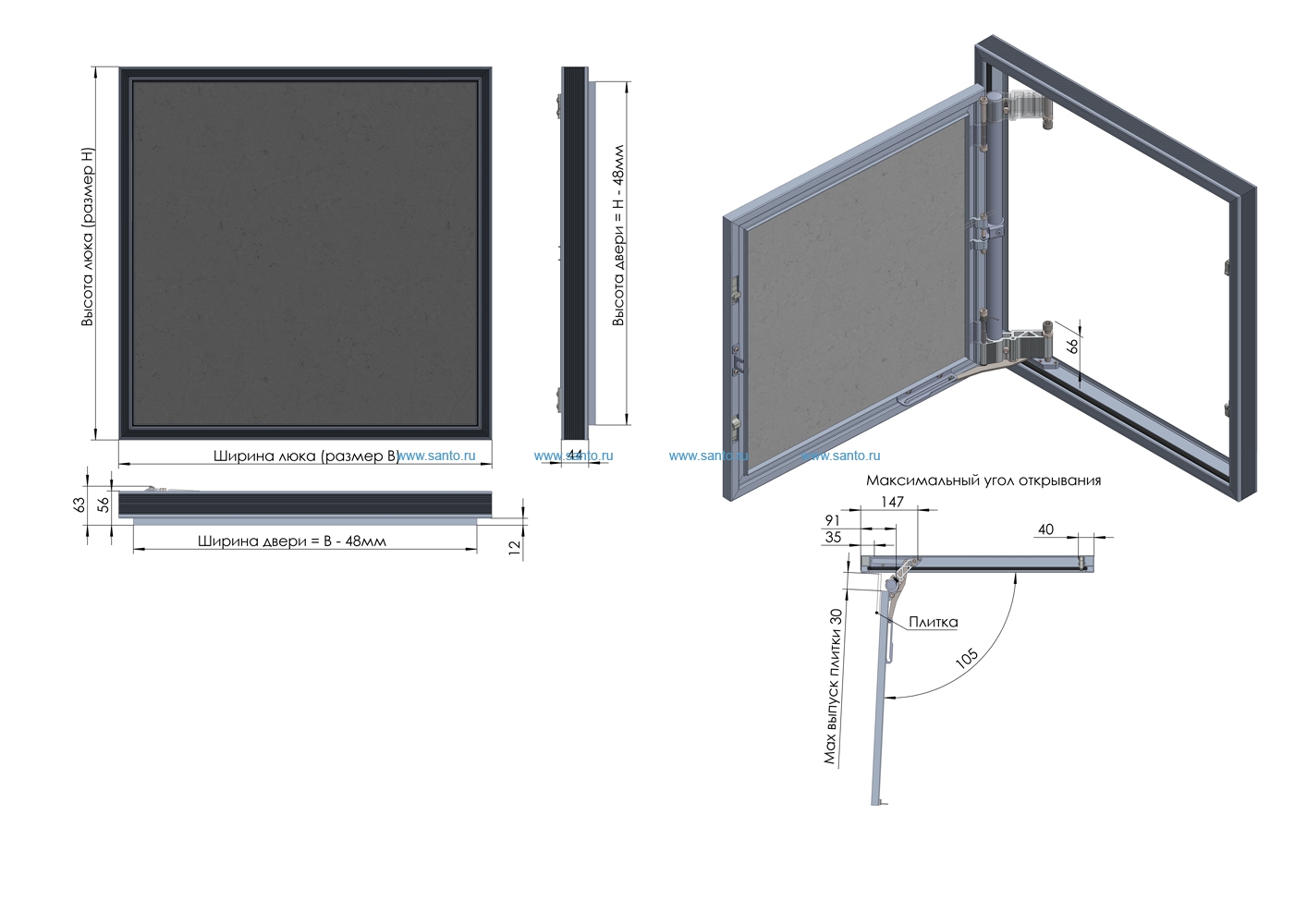 —Люк под плитку Лючки.рф Секрет 3.0 60-50