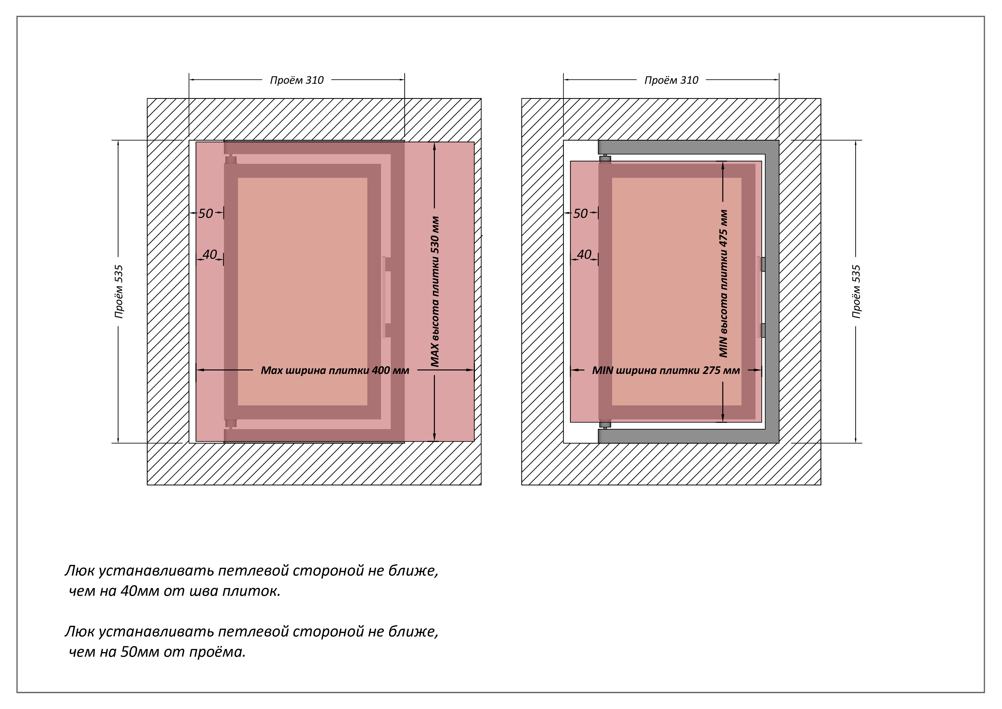 - люк сантехнический 300х500 не имеет провисания под тяжестью облицованного материала;