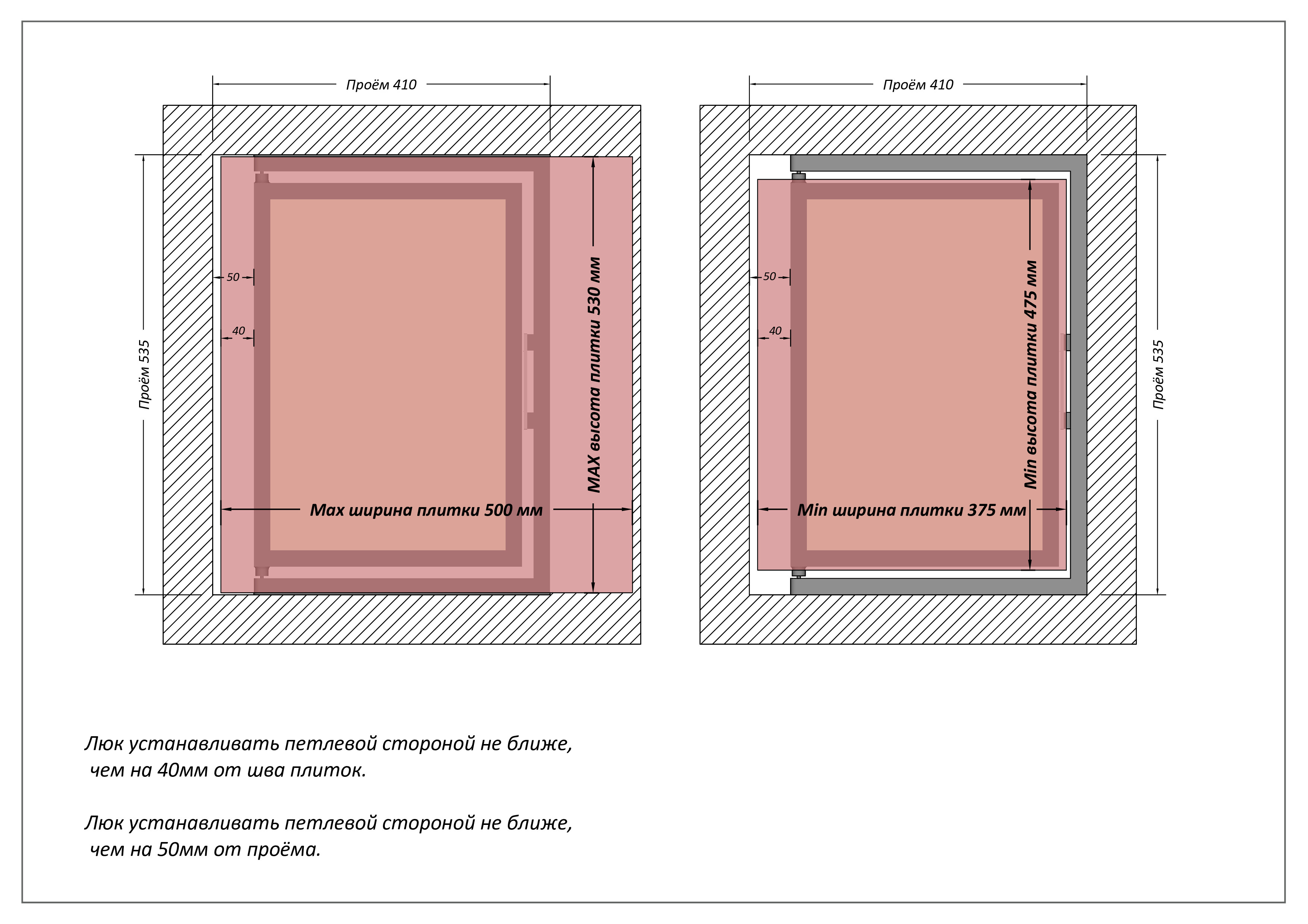 - люк сантехнический 400х500 не имеет провисания под тяжестью облицованного материала;