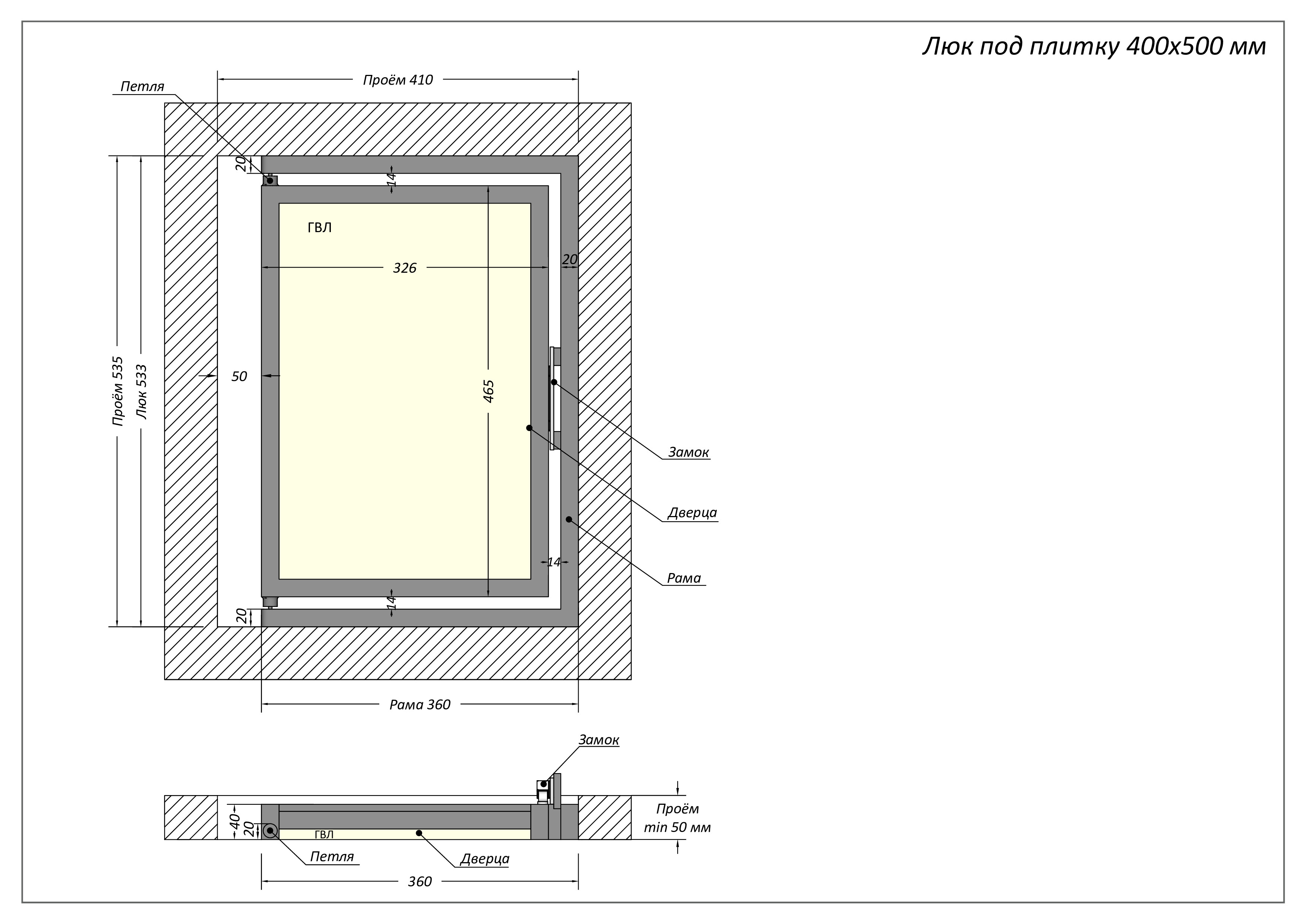- люк ревизионный 50 на 40 см производится в любых формах;