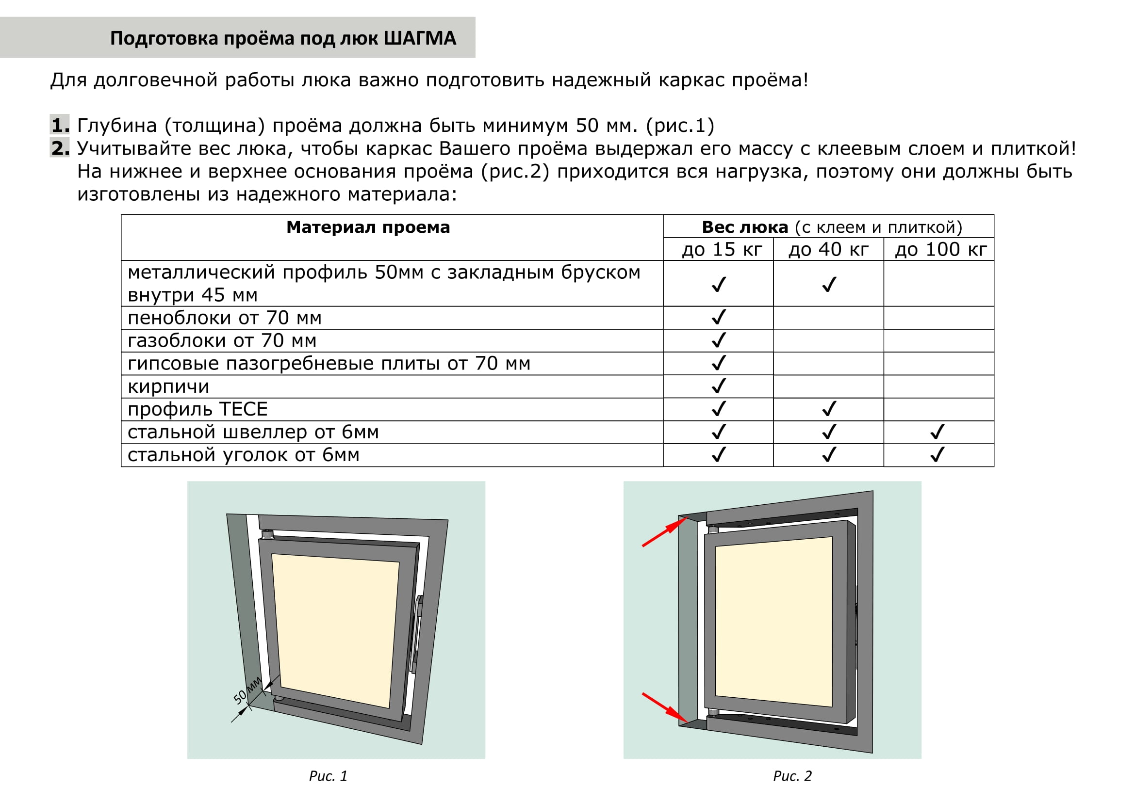 - у ревизионных люков 50 на 70 см отсутствуют провисания под тяжестью облицованного материала;