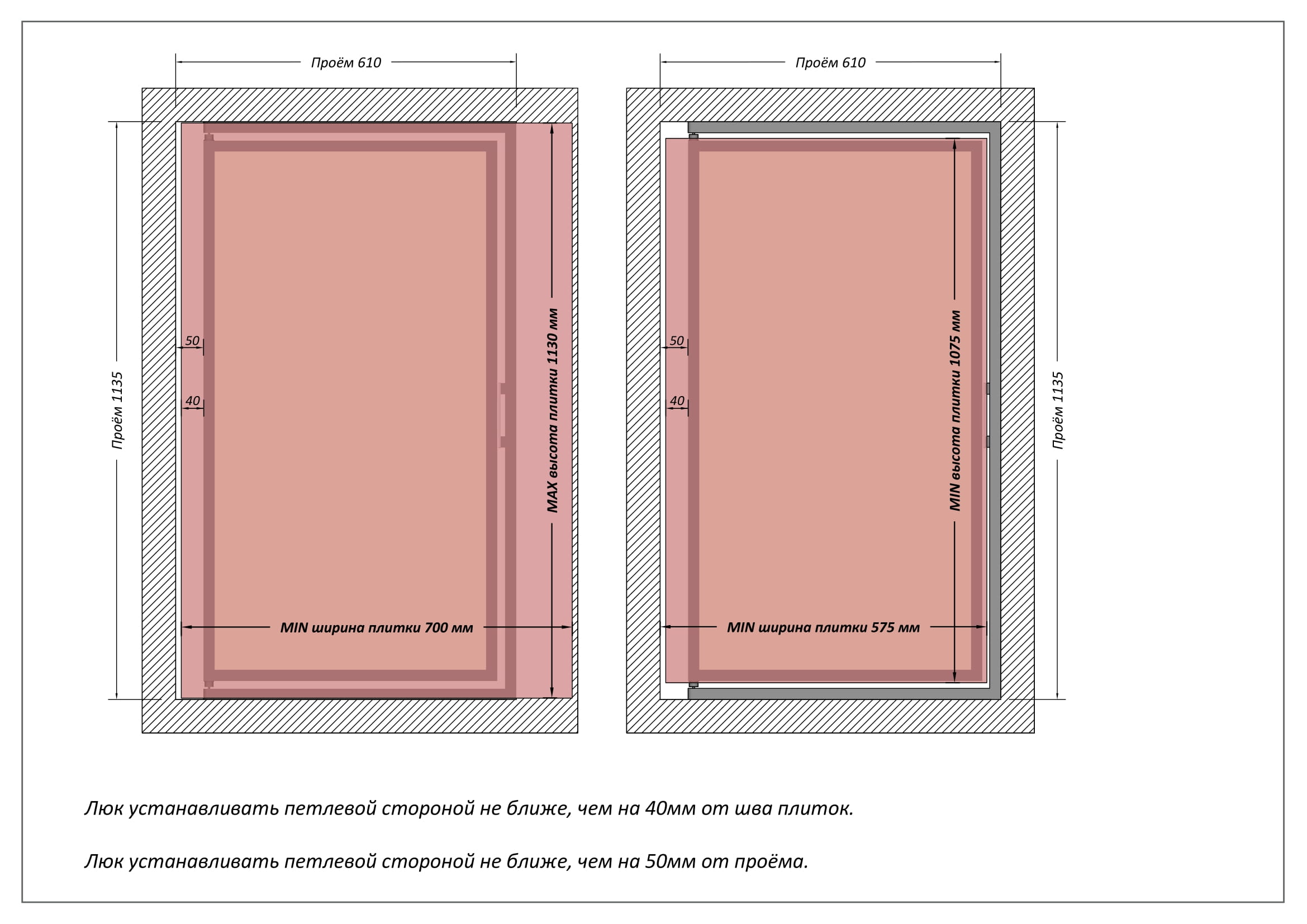 - у ревизионных люков 60 на 110 см отсутствуют провисания под тяжестью облицованного материала;