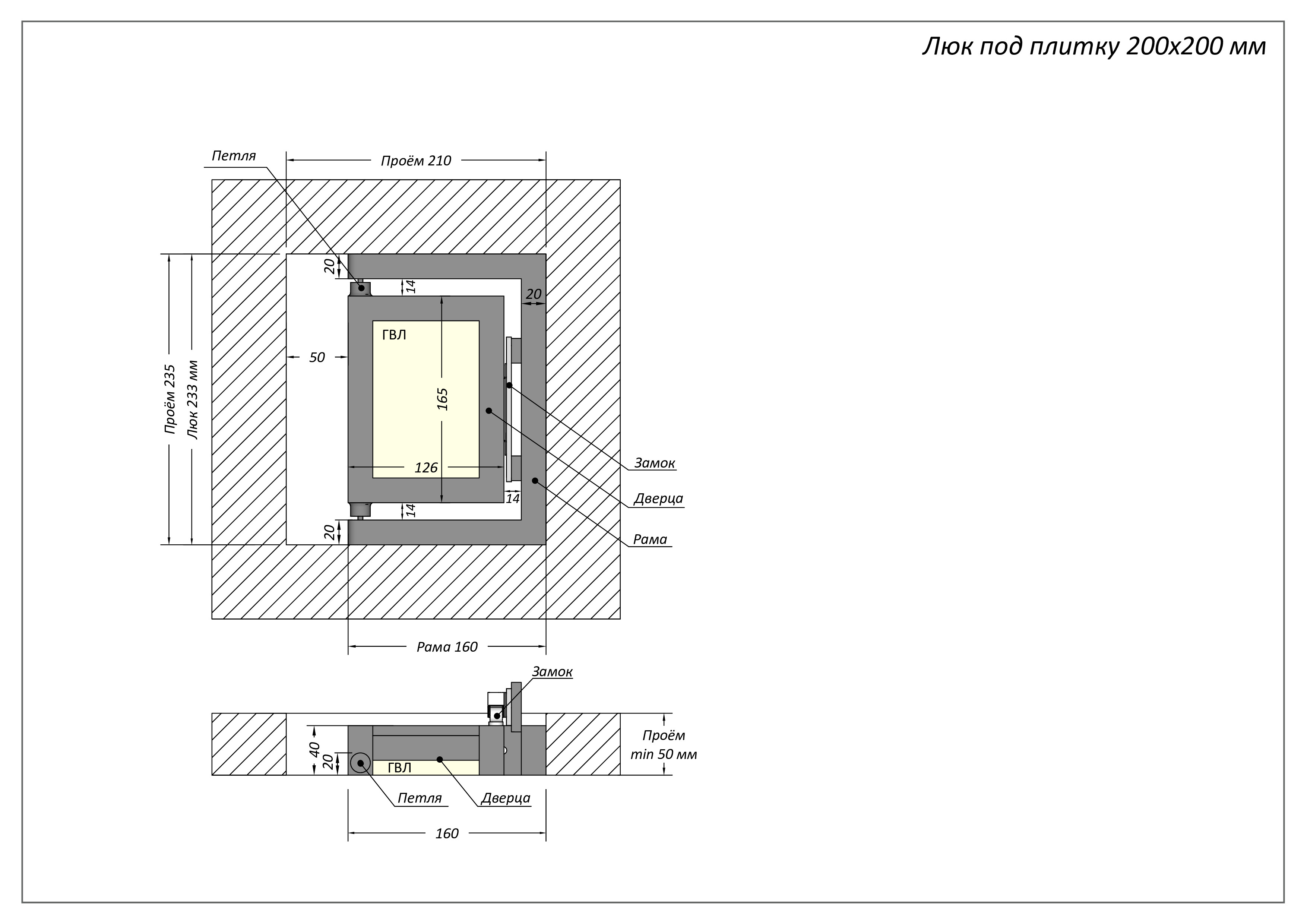- люк под плитку любых форм;