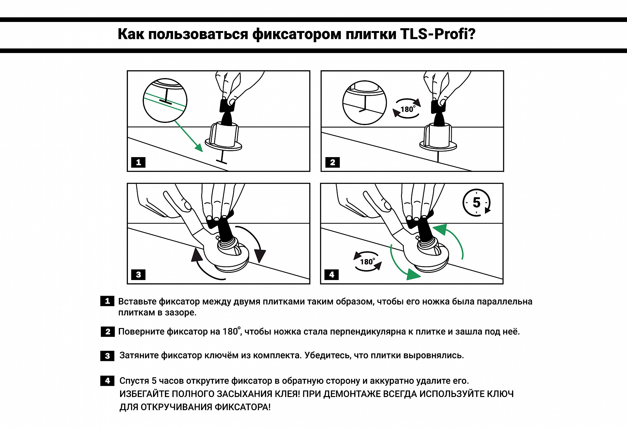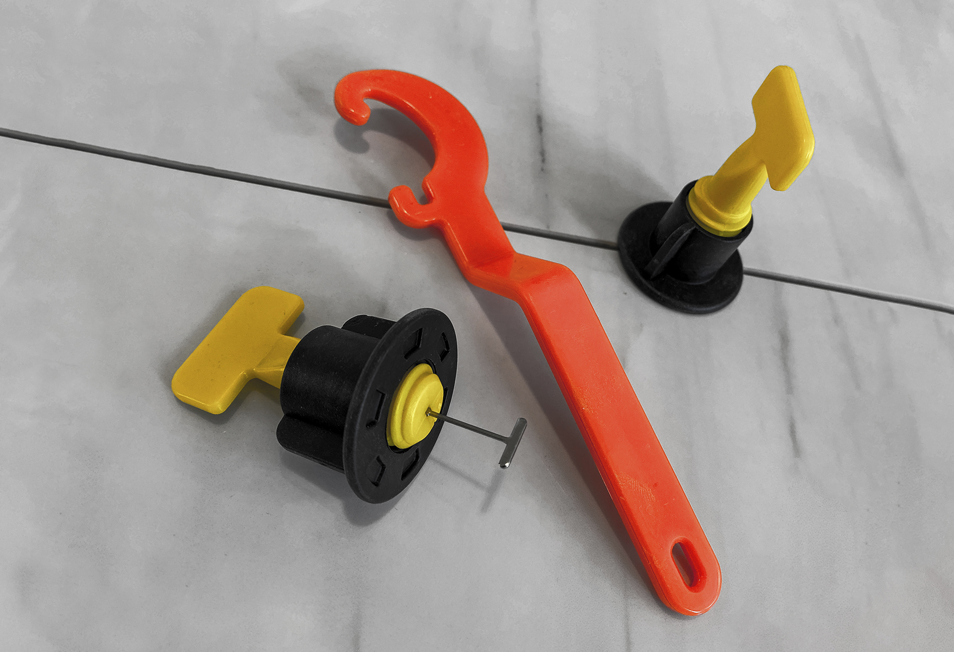3. Затяните фиксатор ключом из комплекта. Убедитесь, что плитки выровнялись.