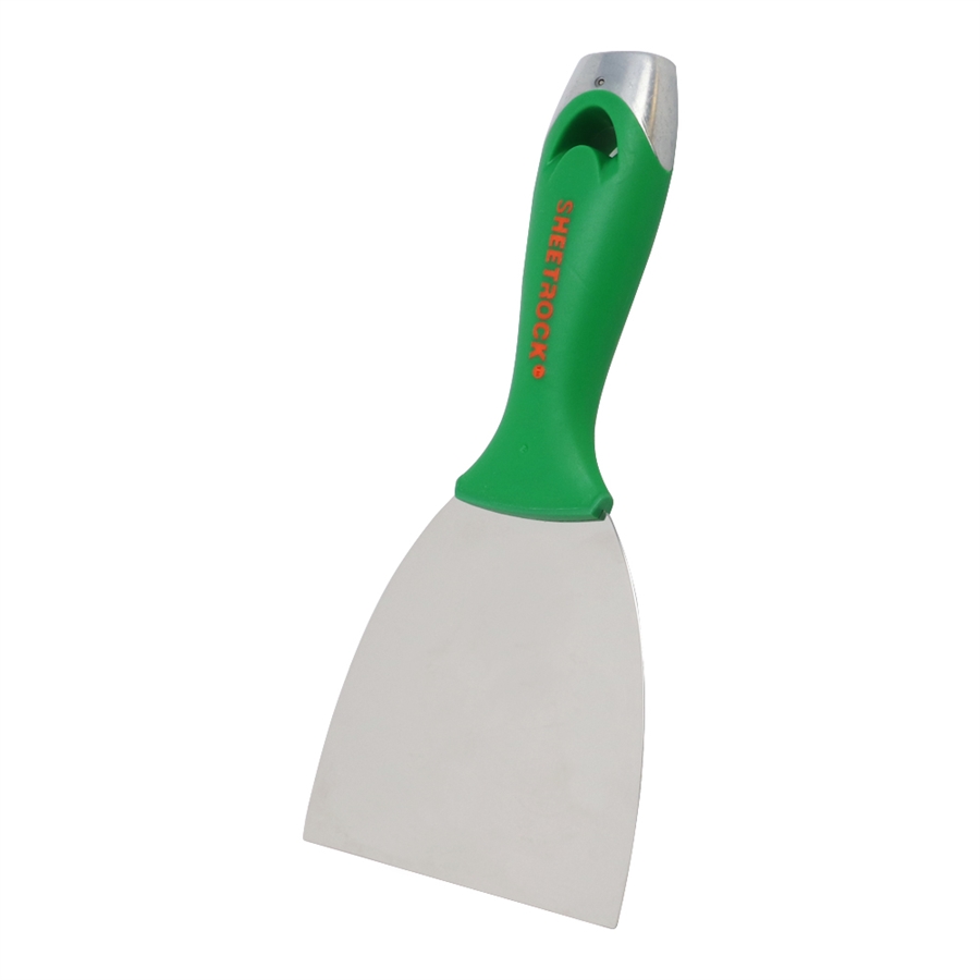 - Облегчённая рукоятка с нескользящим двухкомпонентным покрытием и округлое нержавеющее лезвие - стандарты американских шпателей для сухой отделки.