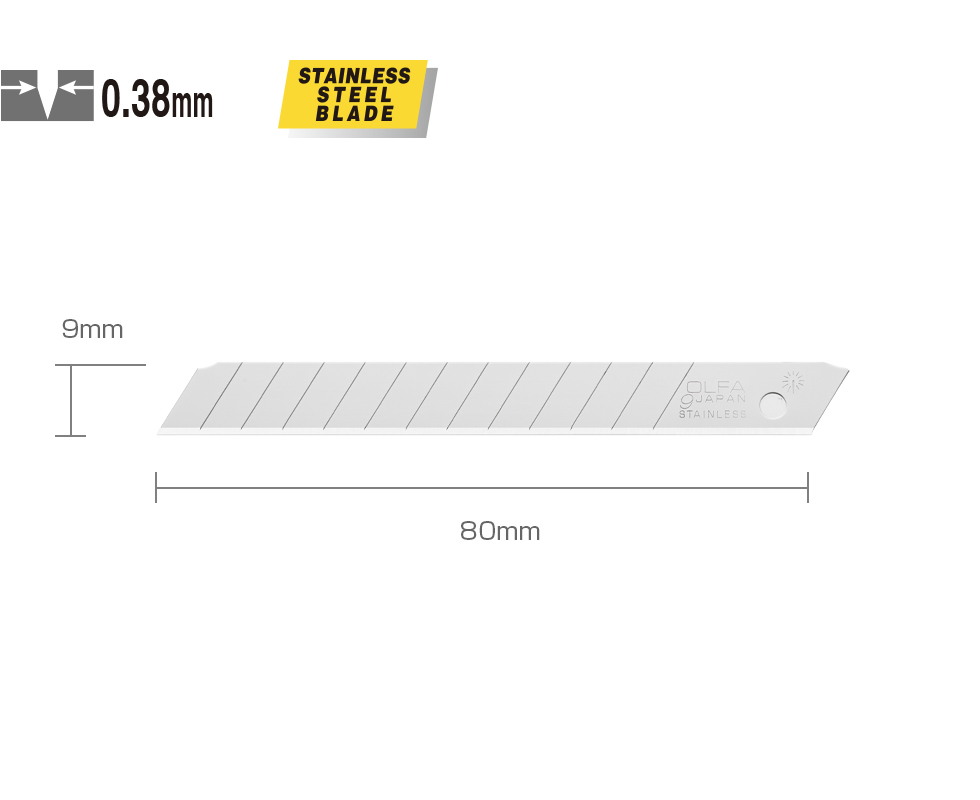 | Габариты лезвия, мм | 9 х 80 х 0.38 |