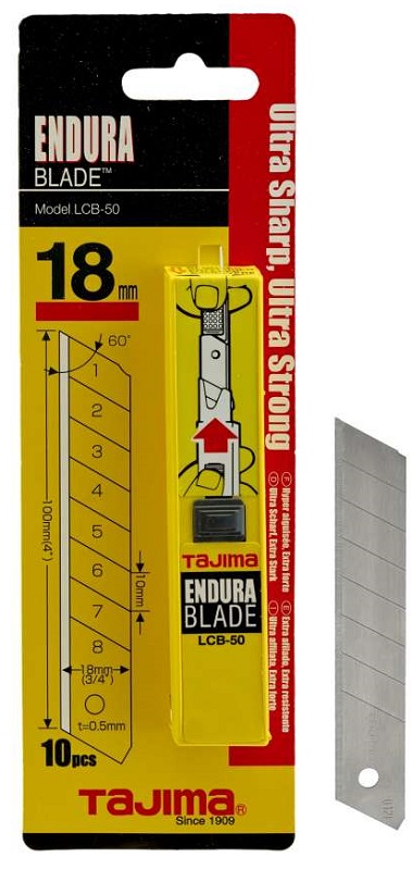 Лезвия, LСB-50, 18 мм,  для ножей  LC-500,501,520,521,510 /10 шт. в футляре TAJIMA LCB50