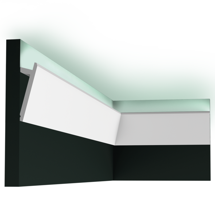 Современный и строгий осветительный профиль, который можно устанавливать как аплайтер и даунлайтер. Примечания: Используйте . Используйте алюминиевую ленту на внутренней стороне профиля или алюминиевый профиль для светодиодов, чтобы свет не просвечивал сквозь молдинг.