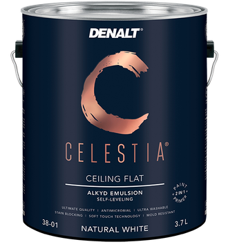 Потолочная краска Celestia 38-01 уникальная самовыравнивающая ультраматовая краска на основе алкидной эмульсии создает прочное влагостойкое покрытие. С этим продуктом вы можете быть спокойны за свой белоснежный потолок, вам не страшны ни затопления от соседей, ни насекомые, ни прочие загрязнения.Вы всегда без проблем сможете помыть поверхность с использованием ПАВ без ущерба внешнему виду.Данная краска выбрана для отделки Музея изящных искусств в Монреале.Для внутренних работ — потолки в любых помещениях, в том числе влажных.Для новых или окрашенных материалами на водной основе поверхностей. Легко наносится на неокрашенные и окрашенные потолки, обои под покраску, гипсокартон, деревянные изделия, бетон, камень, штукатурку, неглазированный кирпич, загрунтованный металл, пластик и т.д.