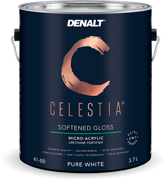 Недостатком большинства матовых красок является низкая стойкость покрытия к пятнам и загрязнениям. Наверняка обращали внимание на грязный ореол вокруг выключателей в комнатах, пятна в рабочей зоне стола на кухне и т.д.У краски DENALT отсутствует данная проблемой из-за наличия защитной пленки, которая, в свою очередь, придает покрытию небольшой блеск (не более 4-8% в зависимости от добавления колорантов). 4101 Celestia - это новая абсолютно матовая краска, стойкая к подобным загрязнениям. Достигается это за счет добавления в краску уретановых микрогранул, которые блокируют попадание грязи в поры лакокрасочного покрытия, придавая поверхности повышенную износостойкость.Продукт на акриловой полимерной основе  предназначена для внутренних работ в помещениях с высокой эксплуатационной нагрузкой - детские, гостиные, кухни, прихожие и т.д.С этой краской вам не страшны ни пятна жира, пищи, грязи, плесени, ни следы насекомых, ни затопления от соседей, ни прочие загрязнения.Вы всегда без проблем сможете помыть поверхность с использованием ПАВ без ущерба внешнему виду.Селестия 41-01 - самый совершенный продукт компании DENALT PAINTS.Данная краска выбрана для отделки Музея изящных искусств в Монреале, поэтому вы можете быть уверены, что никакая другая краска не может сравниться с ней красотой и богатством.