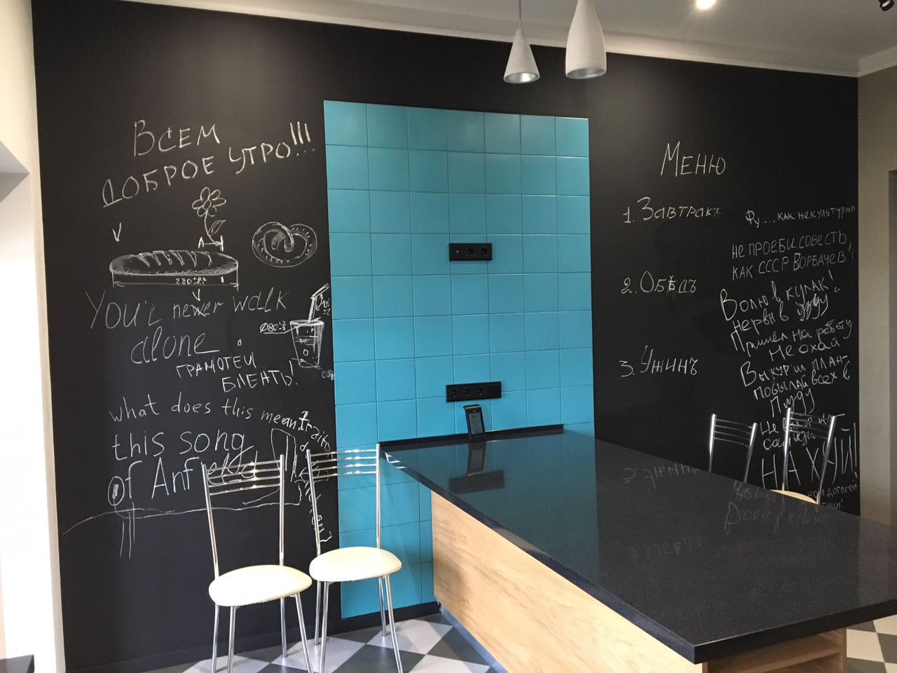 Данный комплект идеально подходит для детских комнат, дома, офисных помещений, кафе, ресторанов, производственных и образовательных учреждений. В отличие от обычных грифельных досок, получаемое покрытие намного долговечнее, может быть любой формы и размера, не занимает место в помещении и не требует утилизации.