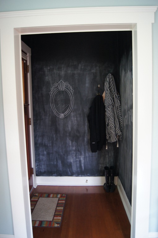 Аккуратно определите границы будущего грифельного покрытия, закрепите их малярным скотчем, это поможет избежать контакта краски с другими поверхностями.