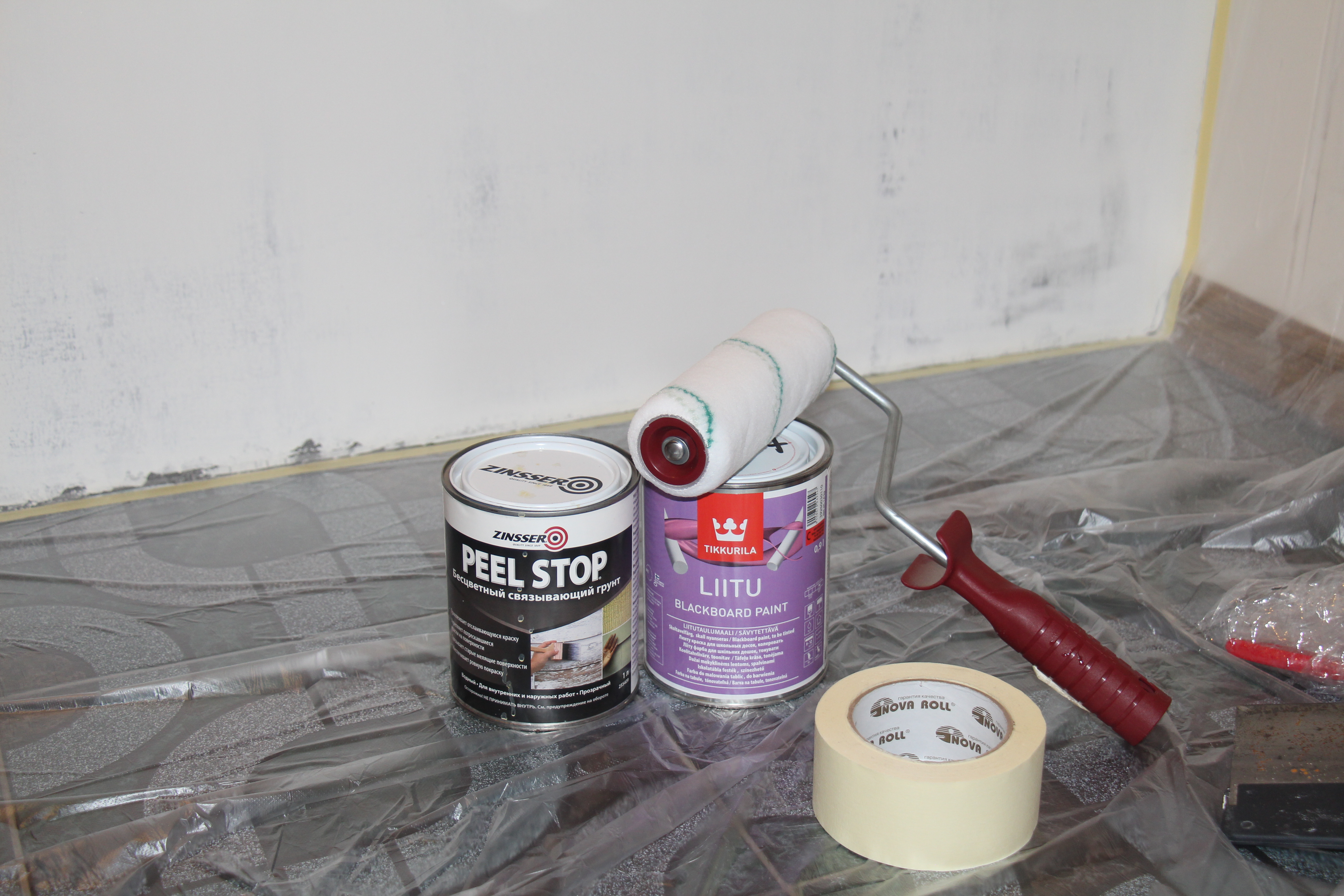 Грифельная краска, как и магнитная, очень пластичная, но значительно лучше раскатывается и расплывается на поверхности. Для нее так же подходит универсальный валик ANZA.
