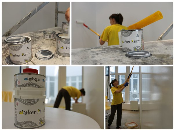 Маркерную краску лучше наносить на магнитную краску Le Vanille, поверхность будет магнититься и существенно расширит функциональность поверхности.