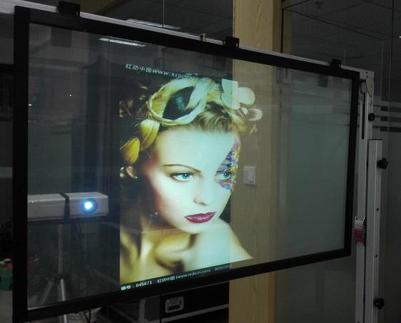 - прозрачная для видео с галограммой (используют в кафе или для витрины магазина, через краску видна витрина )