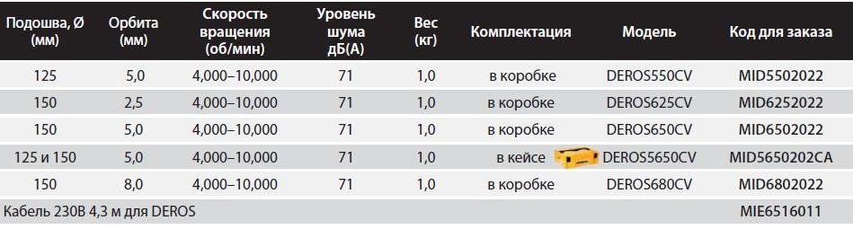 - Электрическая роторно-орбитальная шлифовальная машинка Mirka DEROS 625CV с подошвой 150 мм и орбитой 2.5 мм.