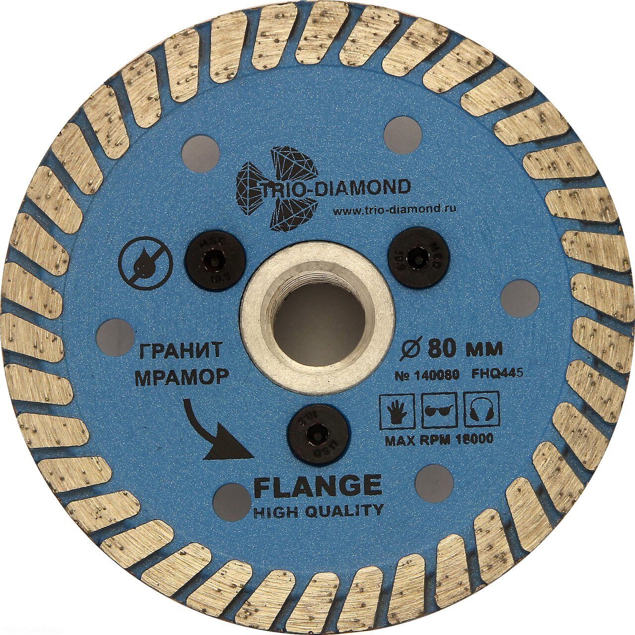 Особенности: фланец М-14 не только позволяет устанавливать данный диск на УШМ без зажимной гайки, но и значительно усиливает корпус диска, что дает возможность работать с материалом под любым углом, создавая дополнительные возможности в работе.
