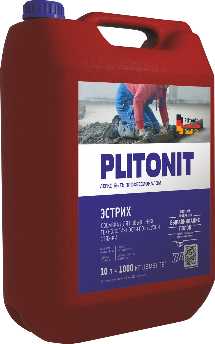 · позволяет работать при пониженных и отрицательных температурах при совместном применении с противоморозной добавкой ПЛИТОНИТ Антифриз при условии раздельного введения добавок в рабочую смесь – сначала добавить противоморозную добавку, затем Эстрих.