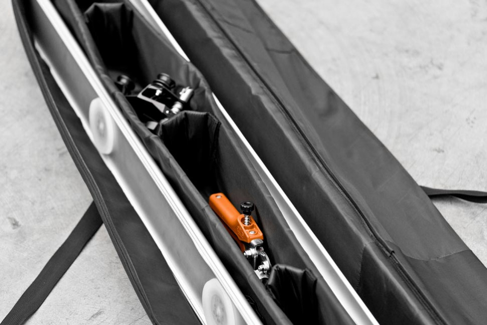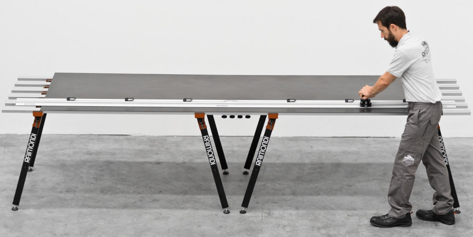 Плиткорез для резки плит большого формата. Удобен в использовании и транспортировки. Вес резчика 9 кг. Упаковывается в чехол с модульными отделами и карманом для хранения. RAIZOR состоит из двух частей по 160 см, литой режущий блок снабженный роликом из карбид вольфрама, щипцы для разлома плитки толщиной от 3 до 10 мм. Плиткорез оснащен 6-ю присосками , которые предотвращают сдвиг направляющей при резки.