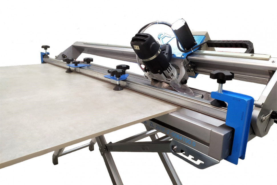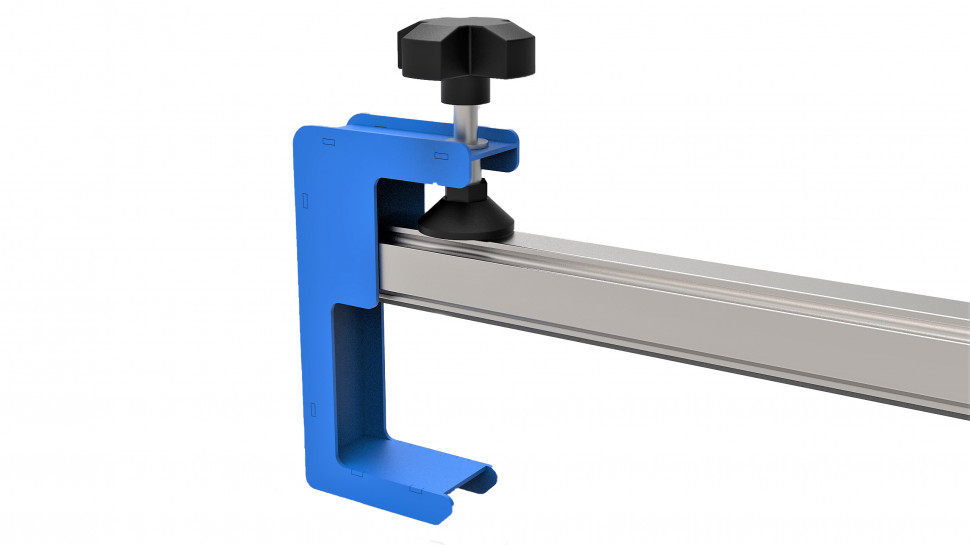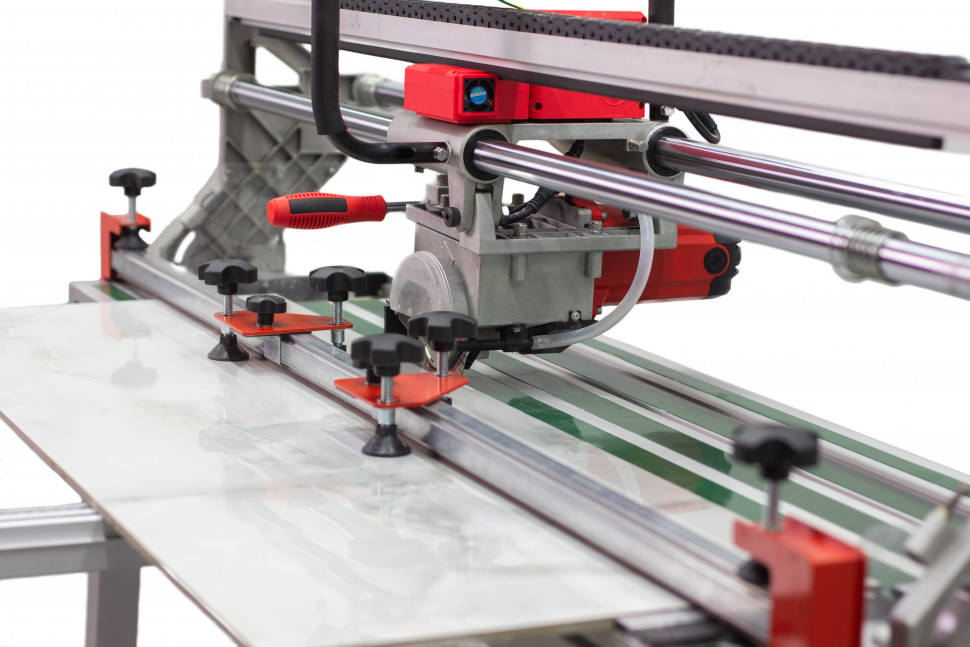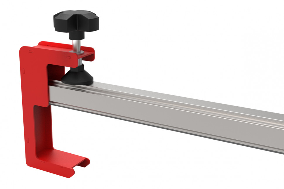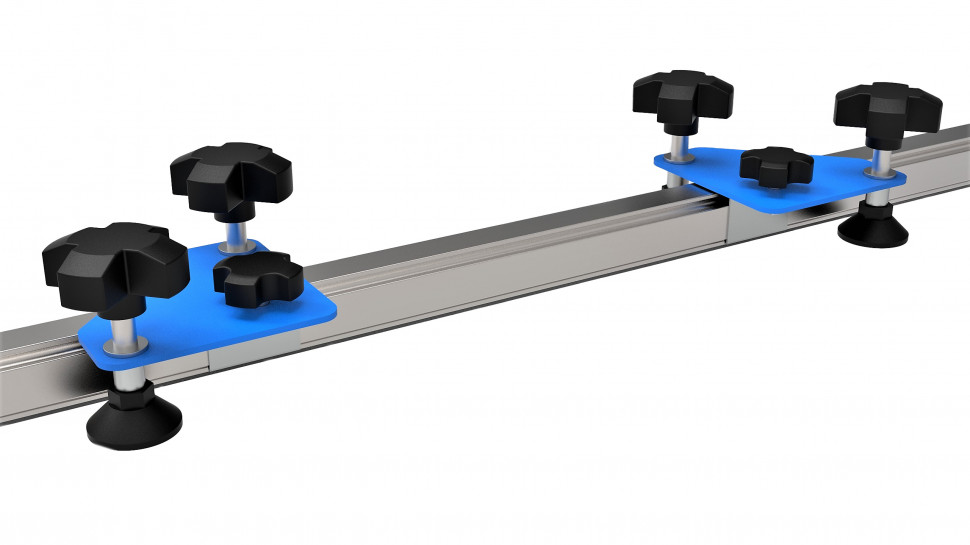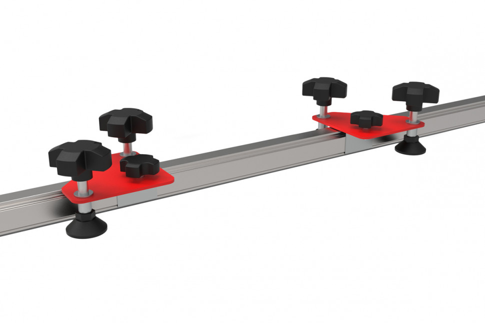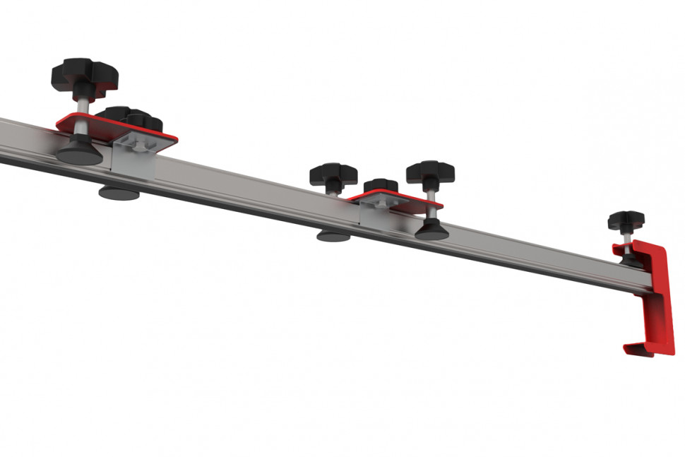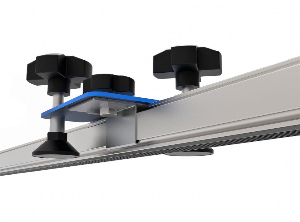 Прижимная планка предназначена для выравнивания широкоформатной плитки относительно плоскости рабочего стола. Прижим осуществляется благодаря конструкции с боковыми струбцинами и прижимными каретками на самой направляющей. У кареток имеется возможность перемещения вдоль всей направляющей, чтобы найти наиболее удачные места для прижима