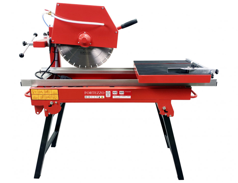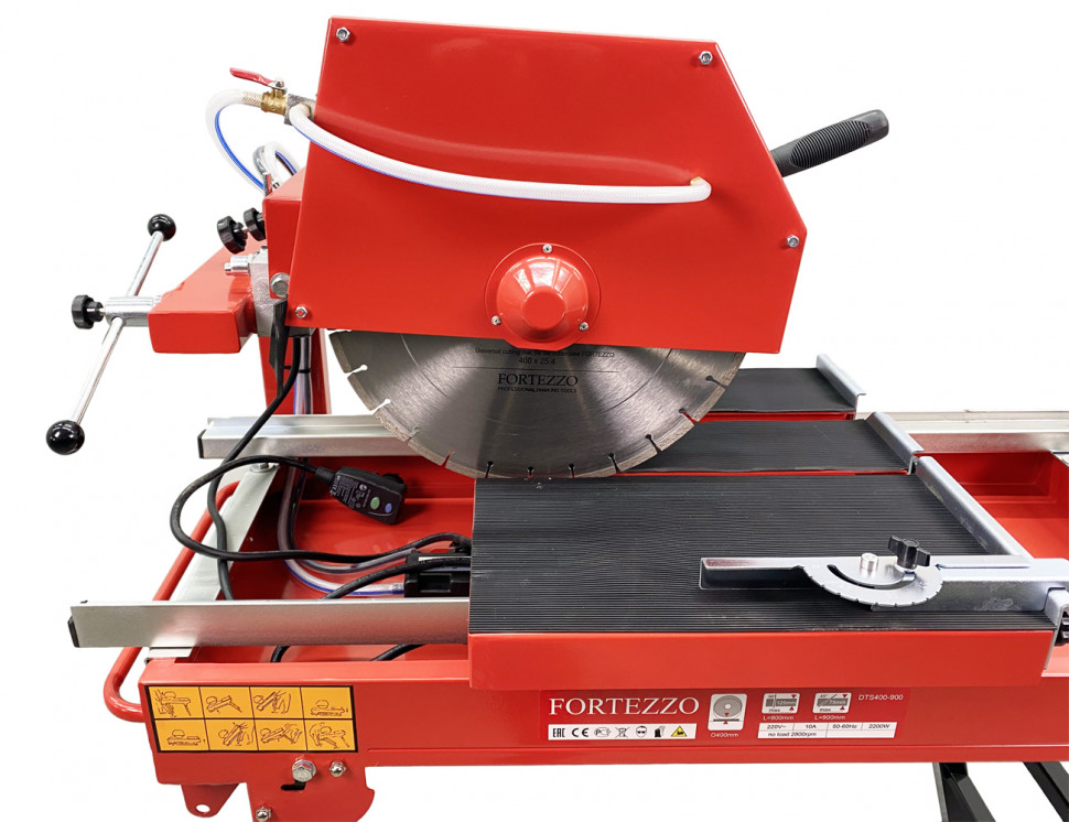 Камнерезный станок Fortezzo ST400-900 Предназначен обработки гранита, мрамора, натурального природного камня, бордюров, песчаника, стройматериалов. Благодаря наклоняемой режущей головке, можно производить рез материала под углом 45°. Рабочий стол размером 530х430 мм, на нем удобно размещать плитку и производить точный рез длиной до 900 мм, максимальная глубина пропила дом130 мм. Станок работает от сети 220 В и может применяться как в бытовых, так и в профессиональных целях.