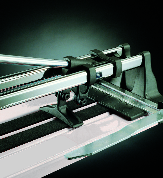 Ручной плиткорез для прямого и диагонального реза керамической плитки. Имеет специальную форму направляющих (толщина стенок 2мм), каретка и разделитель выполнены из полимера IXEF, который имеет прочность легированного алюминия. Оснащен угольником. В комплекте ролик O 15 мм. Две направляющие. Способ резки - от себя. Артикул:  2060