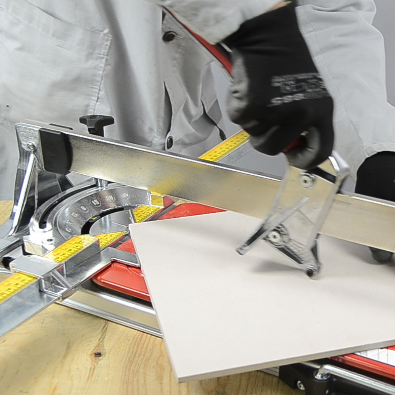 Профессиональный ручной плиткорез с резом на себя. Предназначен для резки керамической плитки и керамогранита толщиной до 15 мм. Классический итальянский монорельс, отличающийся своей надёжностью и жёсткостью конструкции. Корпус сделан из алюминия. Разделитель выполнен из полимера IXEF, который имеет прочность легированного алюминия. Наличие профессиональной линейки. Артикул:  5800