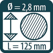 Диаметр 2,8 мм, длинна 125 мм.