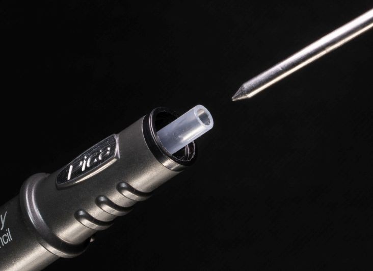 Универсальная применимость благодаря различным сменным грифелям (продаются отдельно) - для темных и светлых, а так же отдельная серия грифелей для влажных поверхностей.