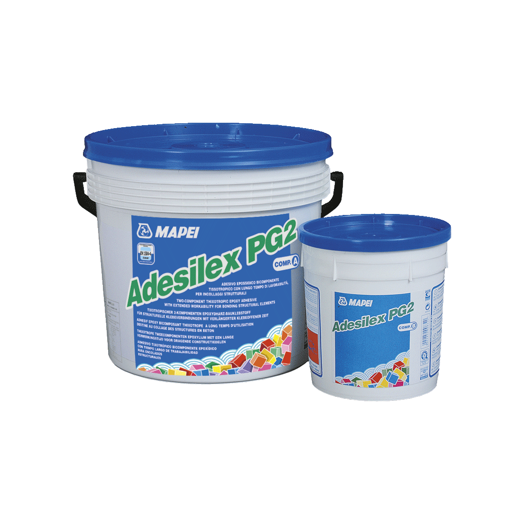 При смешивании компонента А с отвердителем – компонентом В образуется тиксотропный состав легко наносимый при толщине 1 см на вертикальные поверхности. Adesilex PG2 затвердевает за 5 часов за счёт химической реакции и обеспечивает высокую адгезию и механическую прочность. Adesilex PG2 подходит для применения при температуре от +10°С до +30°С.