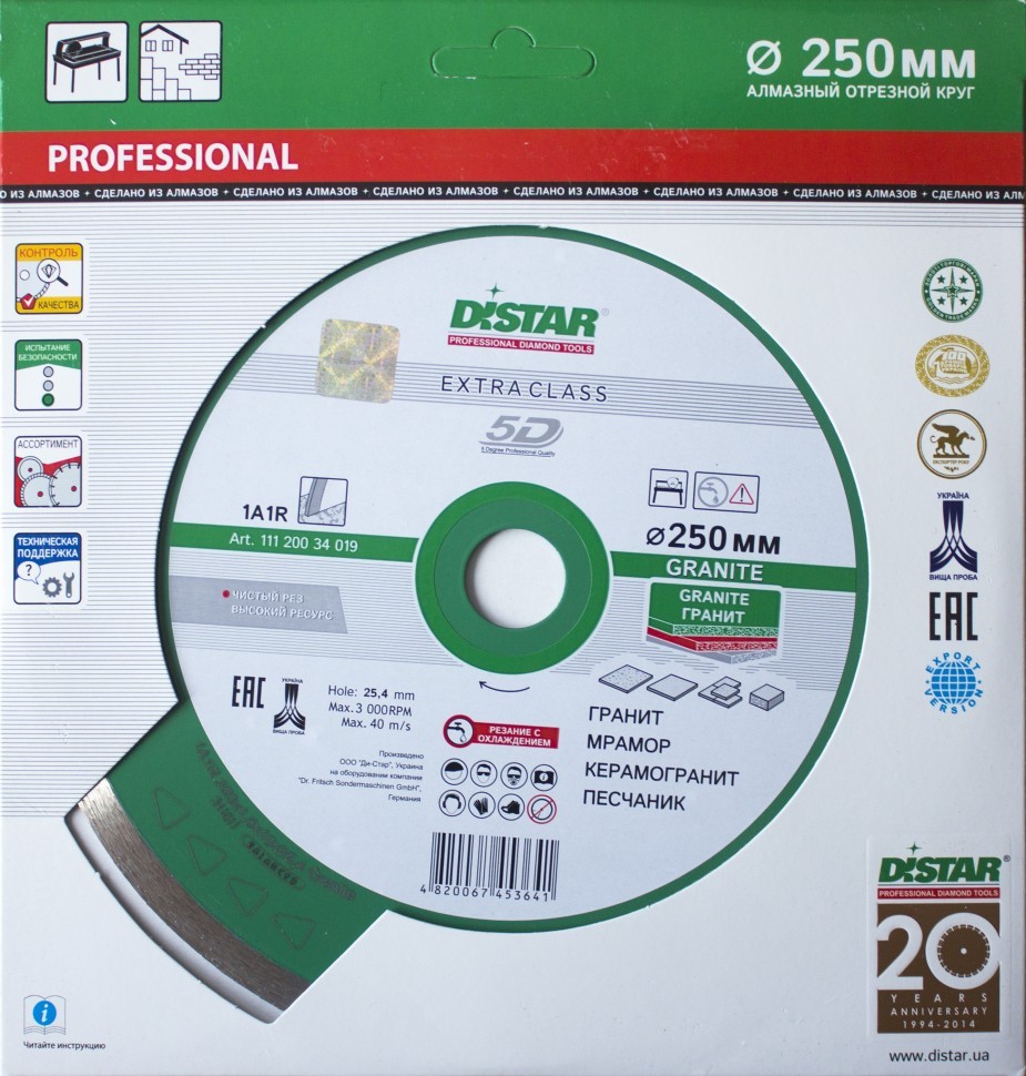 Так, например, круг для обработки гранита Granite, на страничке которого мы с Вами находимся, маркируется зеленым цветом. Таким образом, Вам будет просто найти то, что нужно, чтобы приобрести деталь высокого качества актуального для Вас размера.