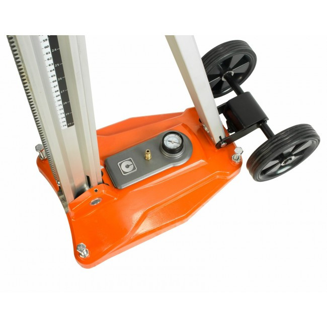 Позволяет закрепить установку без сверления под анкер. Для этого достаточно установить специальное устройство со штуцером и манометром в прорезь для анкера, под площадку в пазы разместить резиновый уплотнитель и откачать воздух из под площадки. Этот способ применим для гладких поверхностей, чтобы исключить их порчу от отверстий анкерного крепления. -