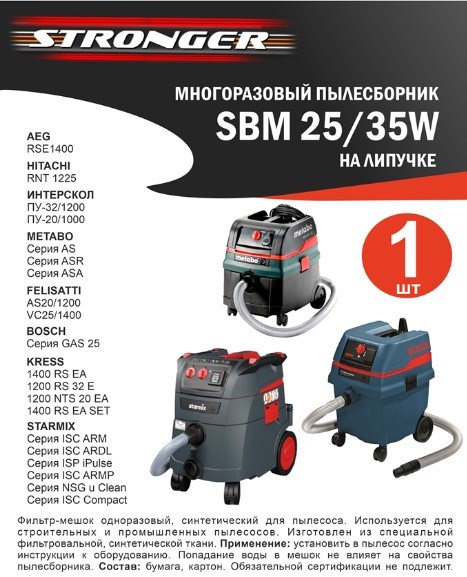 Мешок многоразовый Stronger SBM25/35W на липучке для пылесосов Starmix