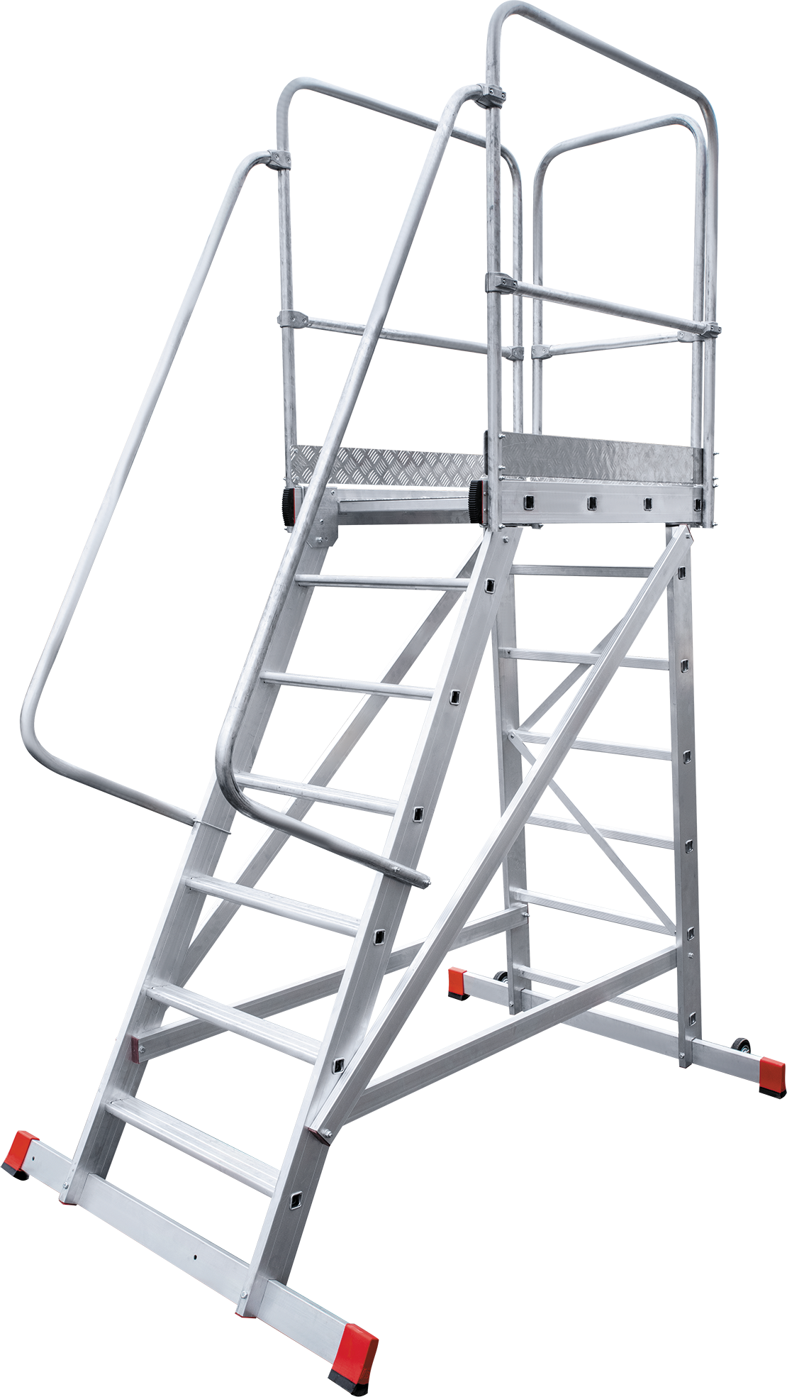 - Безопасная рифлёная площадка 600×810 мм с тремя секциями ограждений.