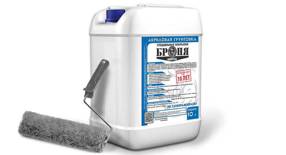 Грунтовка Броня Универсал поставляется в канистрах объемом 10 литров.