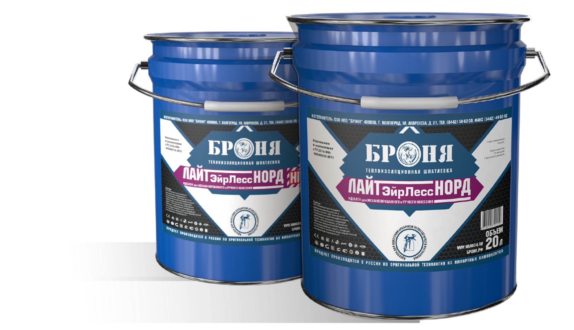 При производстве модификации Броня Лайт ЭйрЛесс Норд значительно улучшена рецептура, материал выпускается в таре 10 и 20 литров (традиционно цена за 1 литр во всех видах тары идентична), улучшены его теплофизические и физические свойства. Помимо этого Броня Лайт ЭйрЛесс Норд, так же как и другие модификации имеет сертифицированную форму выпуска с группой горючести НГ (не горючий).
