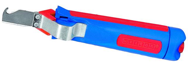 Кабельный нож оснащен эргономичной, противоскользящей формой ручки и лезвием-крюком.