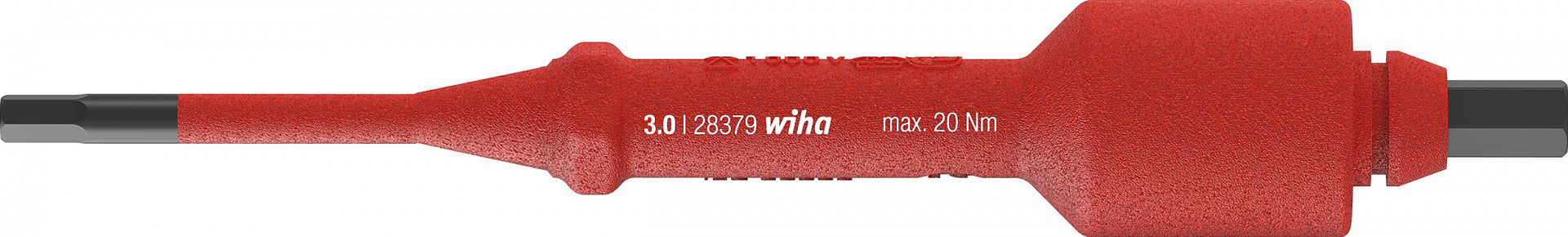 При работах с токопроводящими частями безопасность человека стоит на первом месте. Сменное жало electric позволяет в сочетании с изолированной Т-образной рукояткой динамометрической отвёртки Wiha TorqueVario-S electric выполнять контролируемое затягивание и отворачивание винтов. Изолированные сменные жала подвергаются поштучным испытаниям в соответствии с международным стандартом IEC 60900 и позволяют безопасно работать возле деталей, находящихся под напряжением до 1000 В ~.