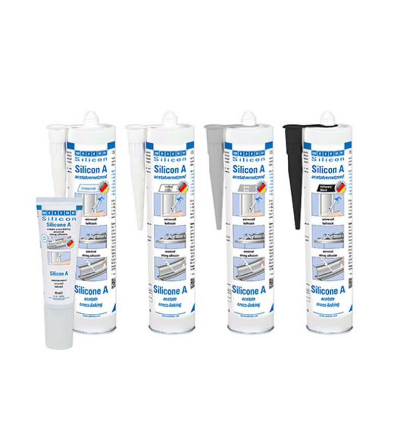 WEICON Силикон A не содержит растворители, ацетатного отверждения, обладает сильной адгезией, сохраняет эластичность в течение длительного времени, обладает устойчивостью к старению, воздействию химикатов и температур до +200 °C (+392 °F), очень эластичный (относительное удлинение при разрыве > 500 %), имеет универсальное применение. Силикон A очень хорошо сцепляется со сталью, алюминием, стеклом, керамикой и многими другими материалами. Силикон A можно использовать в машиностроении и в строительстве промышленного оборудования, в вентиляционной технике и технике кондиционирования воздуха, в энергетической и электропромышленности, при оформлении выставочных павильонов и торговых помещений, а также во многих других областях техники.
